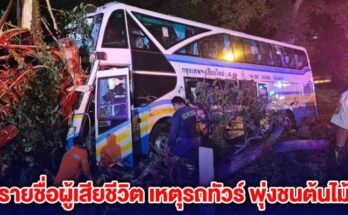 สลด !! รายชื่อผู้เสียชีวิต เหตุรถทัวร์ พุ่งลงข้างทาง!… ดูเพิ่มเติม!!